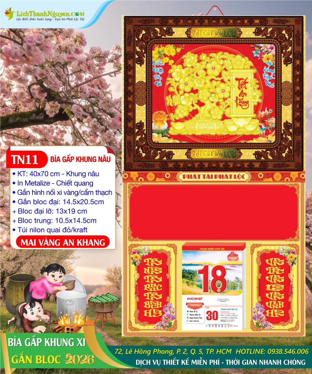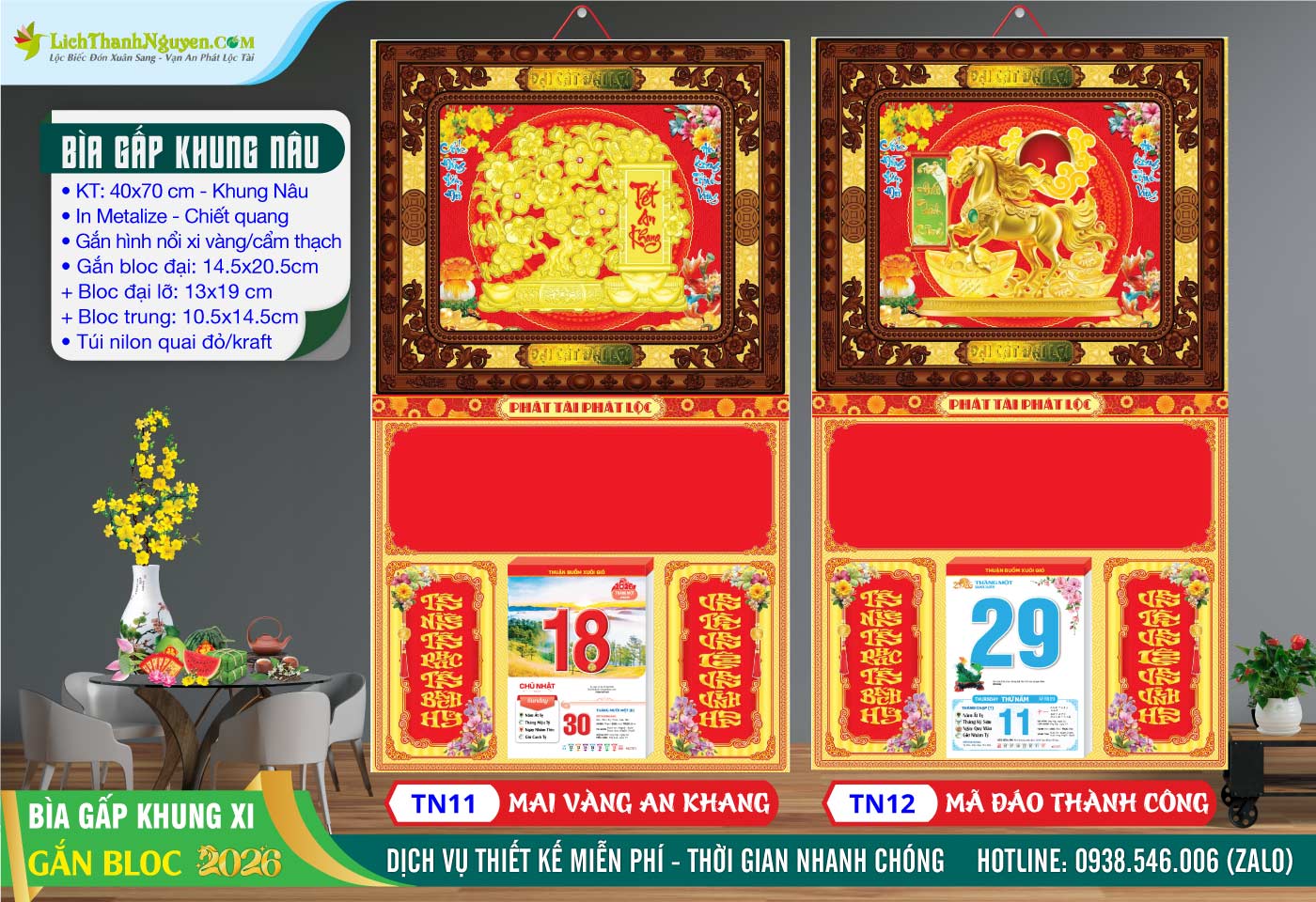 Mã Số: TN11 – Bìa Gấp (40×70) Khung Nâu – Mai Vàng An Khang