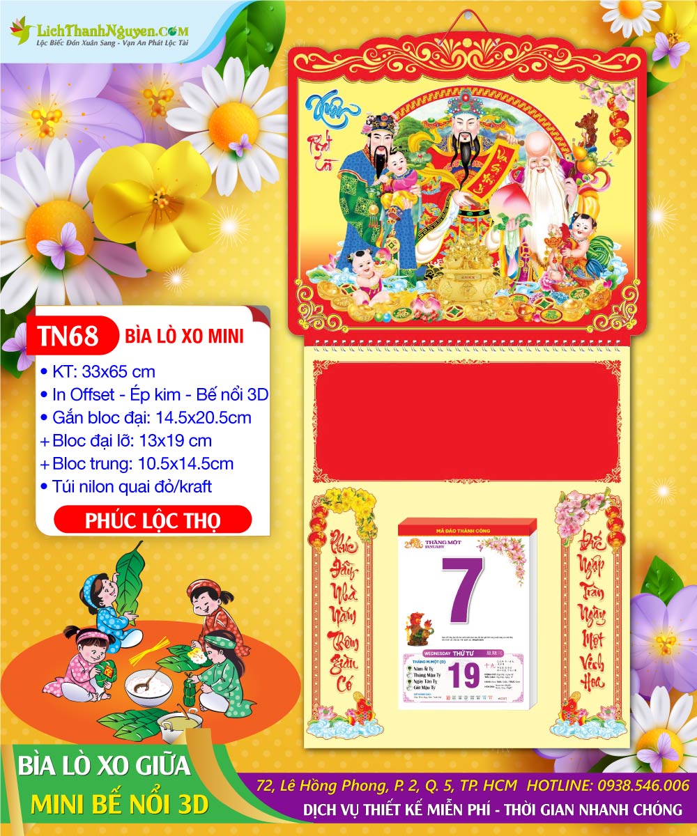Mã Số: TN68 | Bìa Lò Xo Mini (33×65) Bế Nổi – Phúc Lộc Thọ