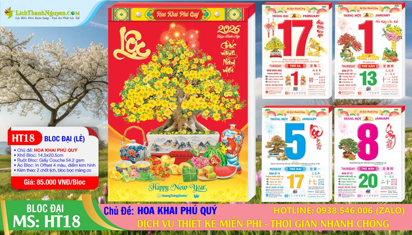 Quy Cách Lịch Bloc Đại (14.5×20.5cm)